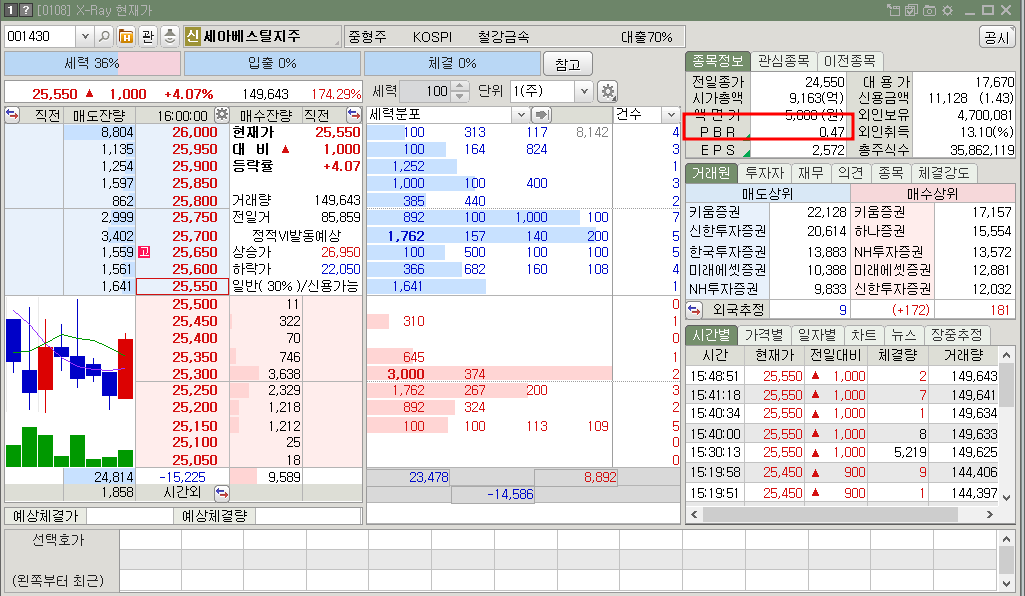 만일 이 위치에 PER이라고 되어 있다면 PER을 한 번 눌러보면 PER에서 PBR로 변환됩니다.